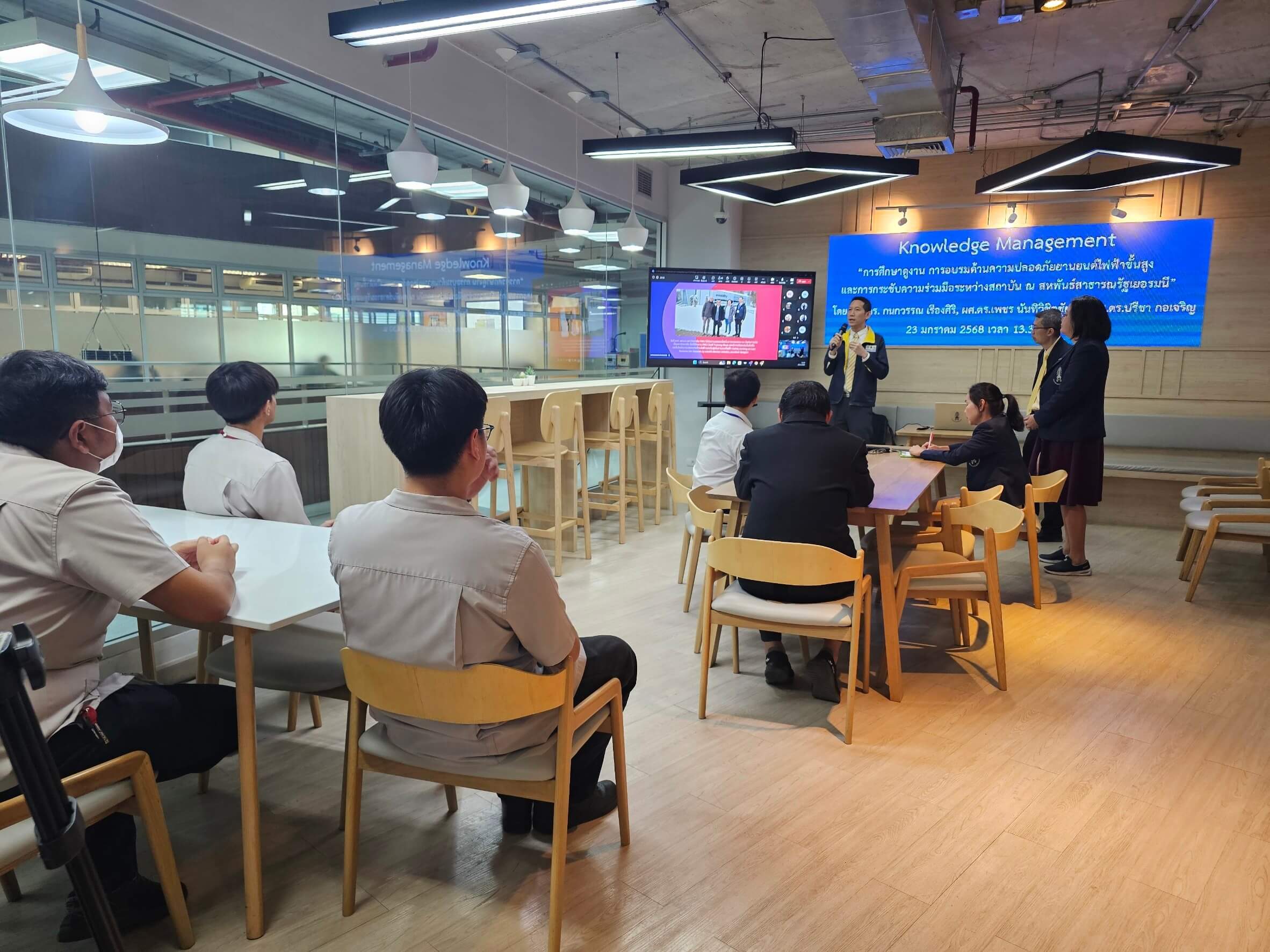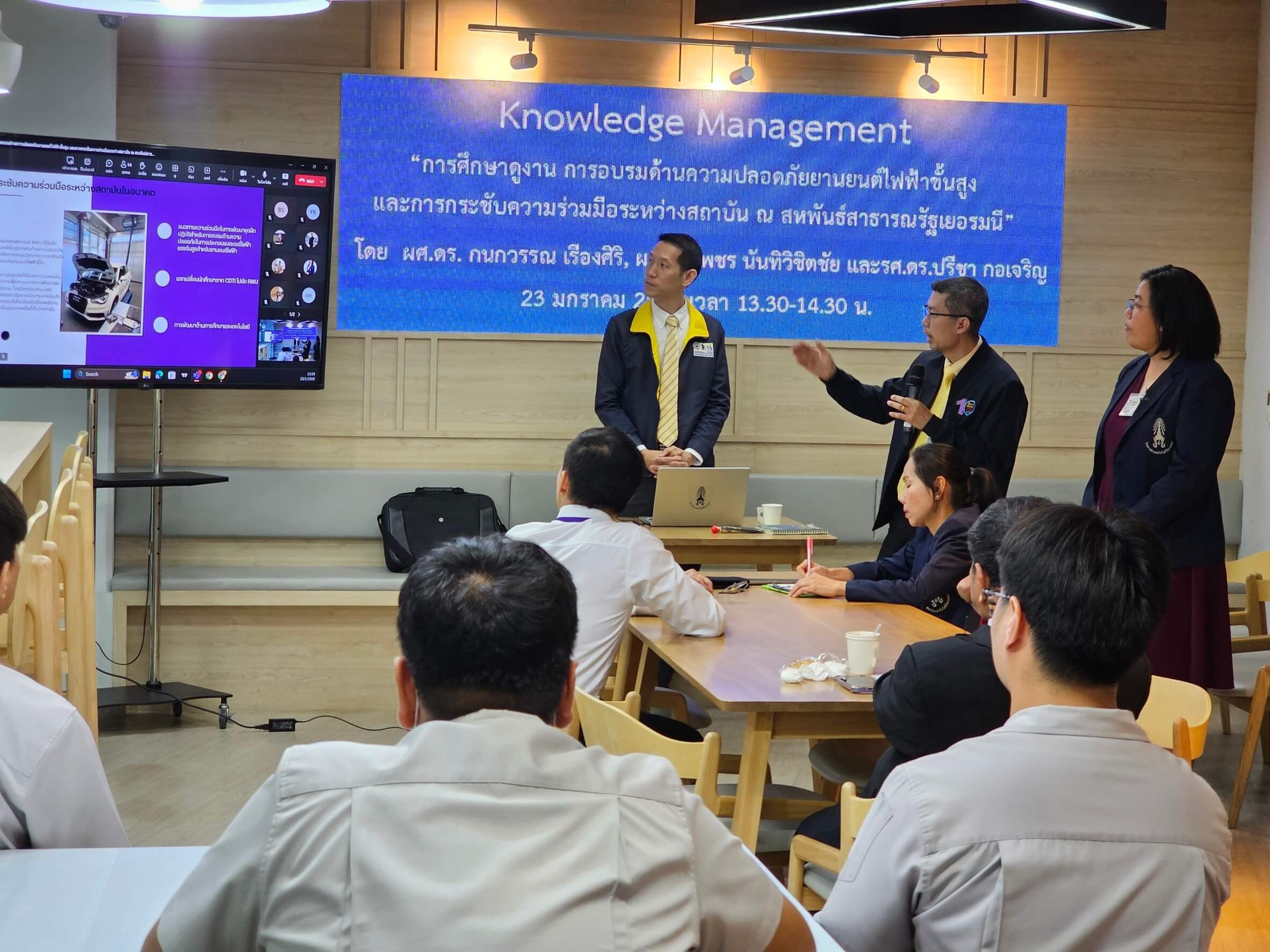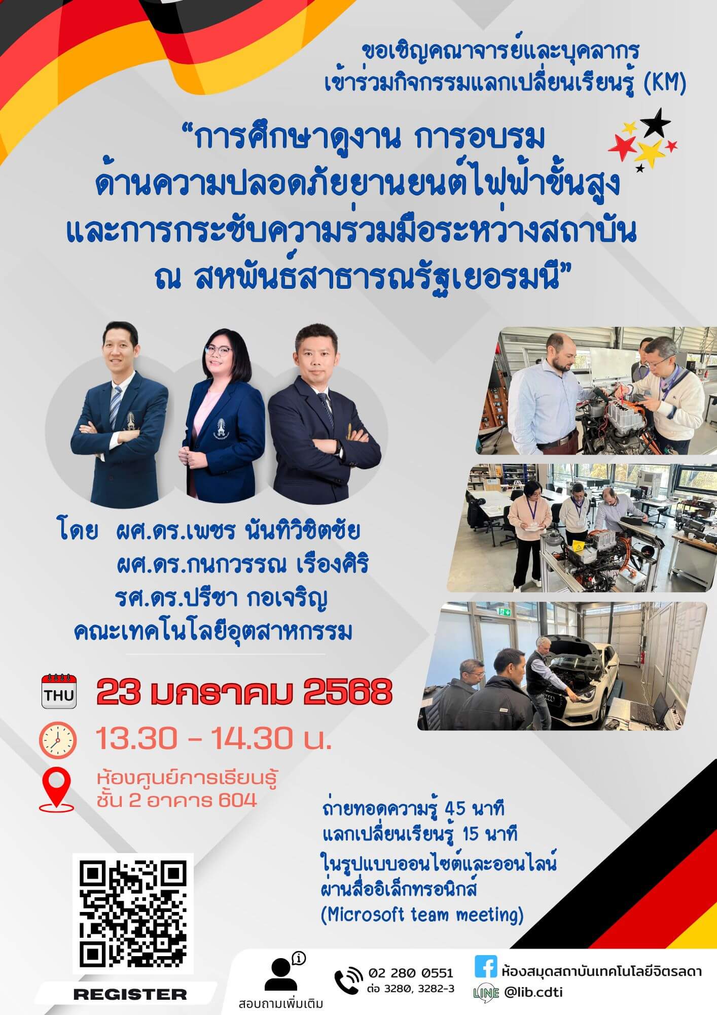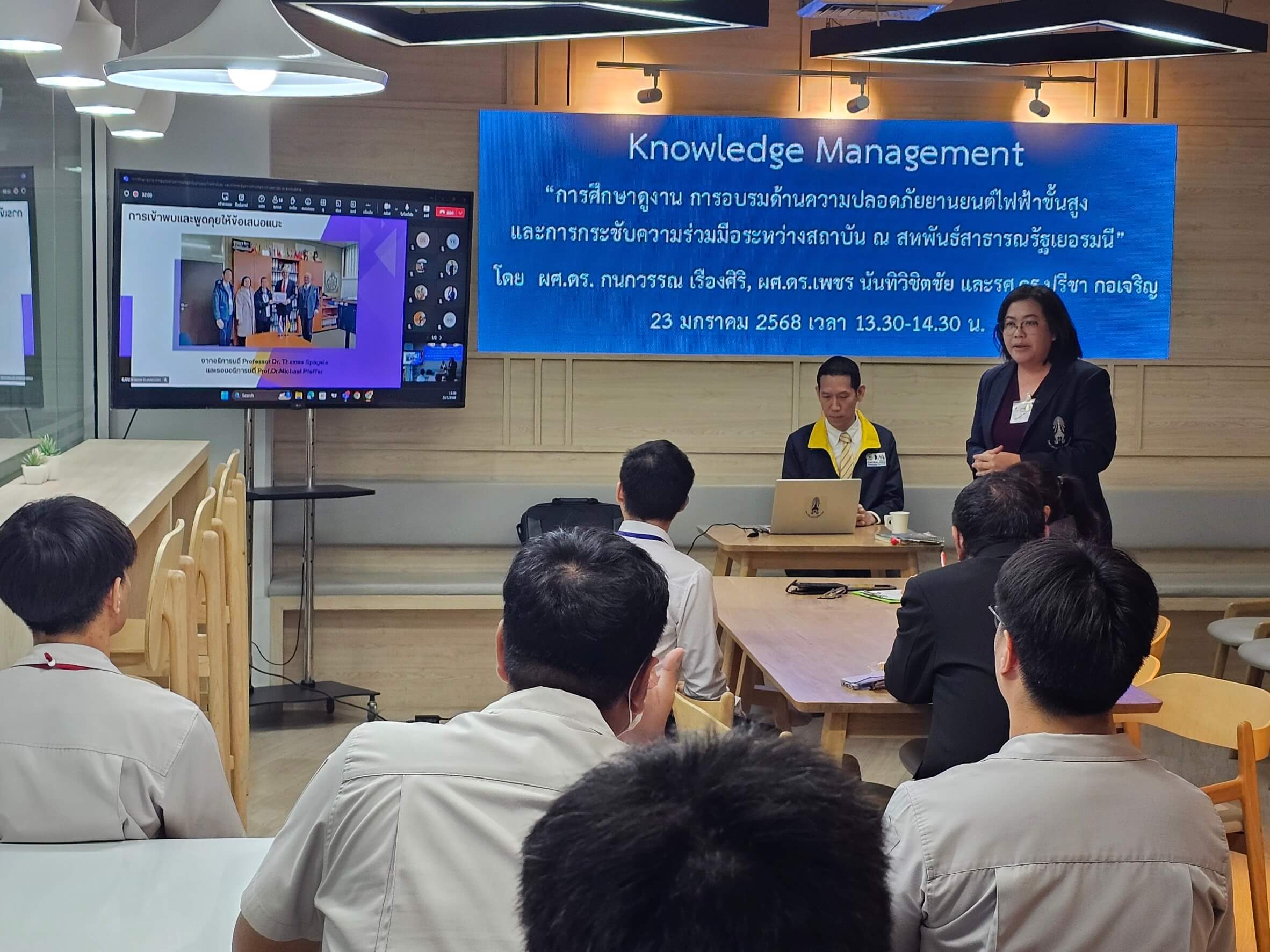 กิจกรรมแลกเปลี่ยนเรียนรู้ (KM) ในหัวข้อ การศึกษาดูงานการอบรมด้านความปลอดภัยยานยนต์ไฟฟ้าขั้นสูงและการกระชับความร่วมมือระหว่างสถาบันณสหพันธ์สาธารณรัฐเยอรมนี โดย ผศ.ดร. กนกวรรณเรืองศิริผศ.ดร.เพชรนันทิวิชิตชัย